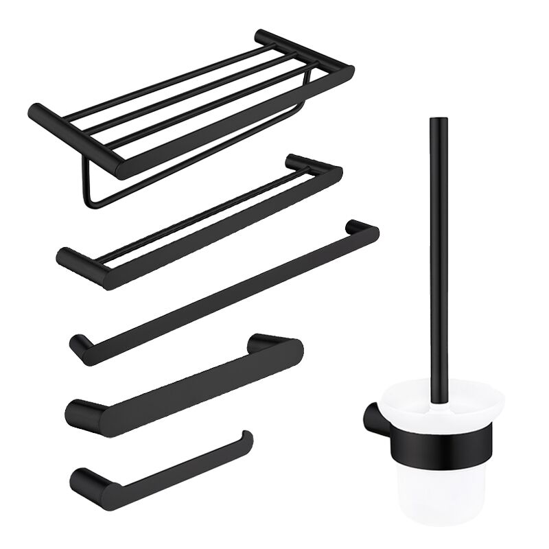 Matte Black Luxurious Toilet and Bathroom Accessories Set 6 Piece Shelf Stainless Steel for Home