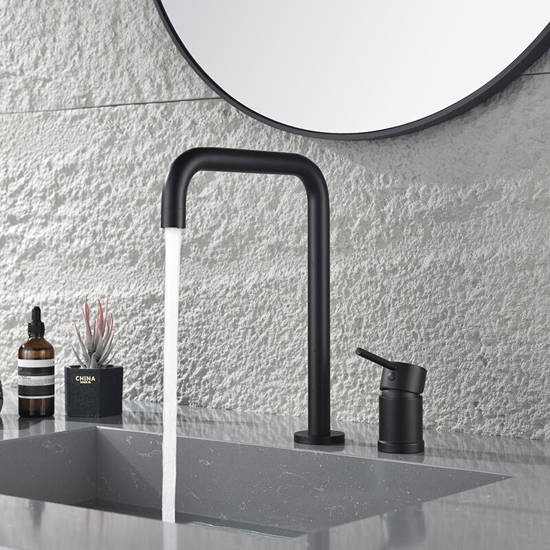Modern Bathroom Basin Mixer Faucet Deck Mounted Matte Black Vanity Faucet Single Handle Brass Wash Basin Faucet