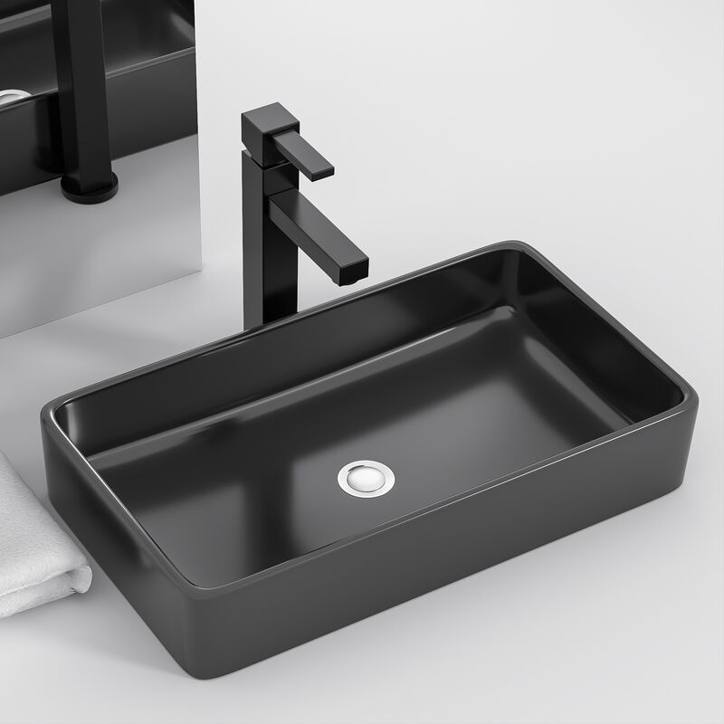 Modern Porcelain Mount Washbasin for Hotels Rectangular 24 Inch Ceramic Black Bathroom Sink