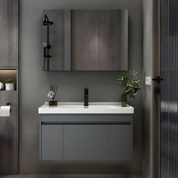 Modern Wall Mounted Vanity Combo Bathroom Cabinet Ceramic Countertop
