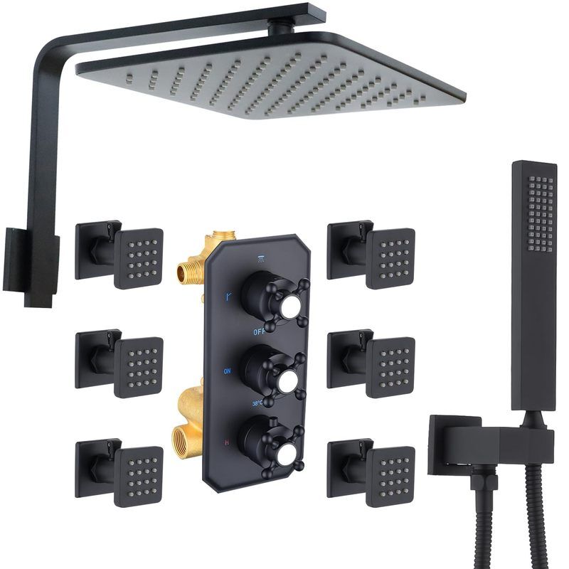 Set Pancuran Mandi Termostatik Kombo Bilik Mandi Di Dinding Persegi 10 Inci Set Sistem Pancuran Mandi Termostatik