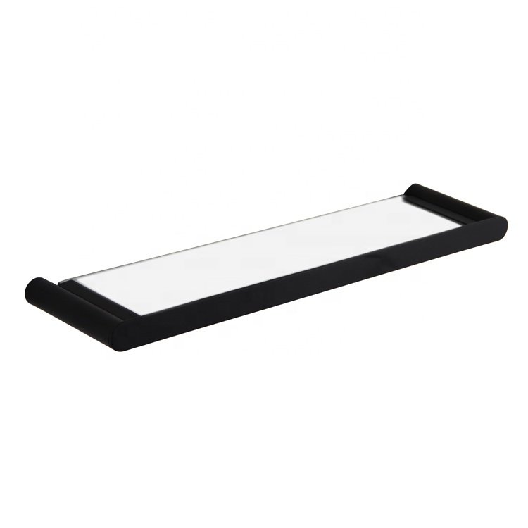 Bathroom Accessories Tempered Glass Shelf Holder Black 304 Stainless Steel Frame Storage Wall Mounted Shower Rack