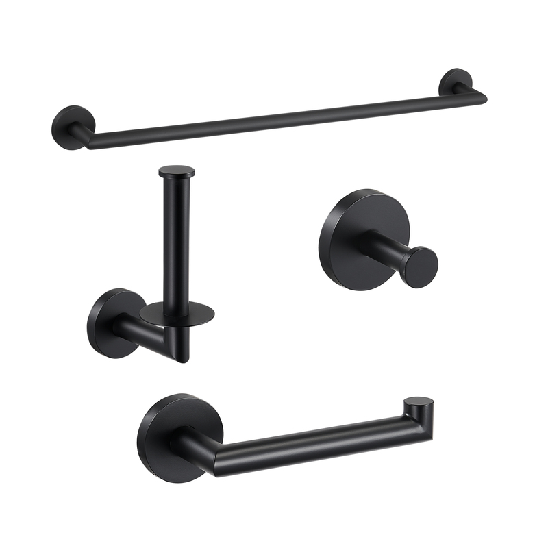 High Quality Stainless Steel 304 Black Series Shelf Ftting 4 Pieces Bathroom Accessories Set