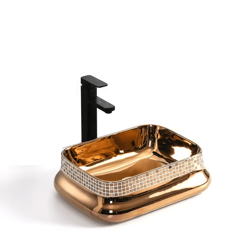 Luxury Electroplate Ceramic Bathroom Art Sink Hand Wash Countertop Basin for Hotel
