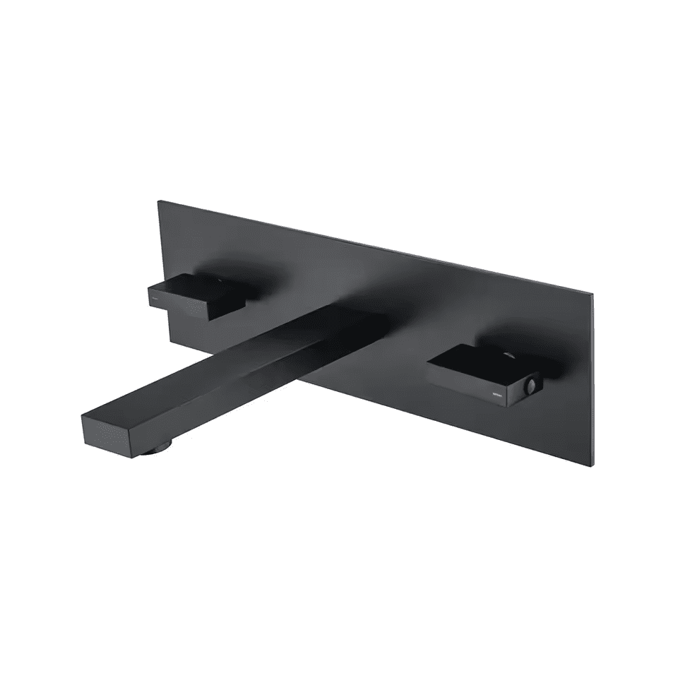 Matt Black Finished Solid Brass Wall Mounted Double Handles Basin Mixer Faucet