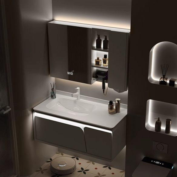 Solid Wood Bathroom Cabinet, Rock Board Washbasin, Bathroom Washbasin