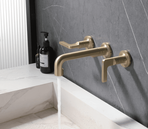 Wall Mounted Wash Basin Faucet Brushed Gold Faucets Mixers Taps 3 Hole Brass Bathroom Sink Faucet