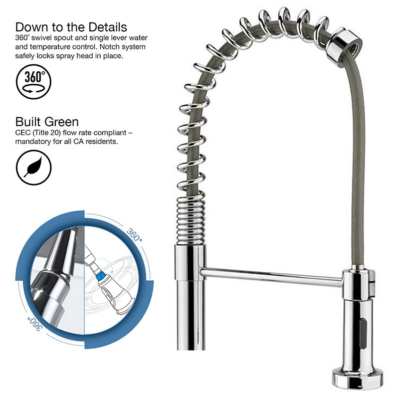 The commercial sink faucet spring is made under special heat treatment, can avoid deformation, keeps perfect all the time.high quality rv faucets kitchen which is built for Long-Lasting Performance, good function and glossy, let you far away from annoying of changing a new one in a short time.