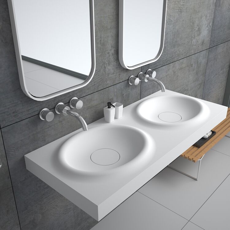 New Design Stone Resin Hanging Bathroom Sinks with Two Faucets Double Wash Basin Sink