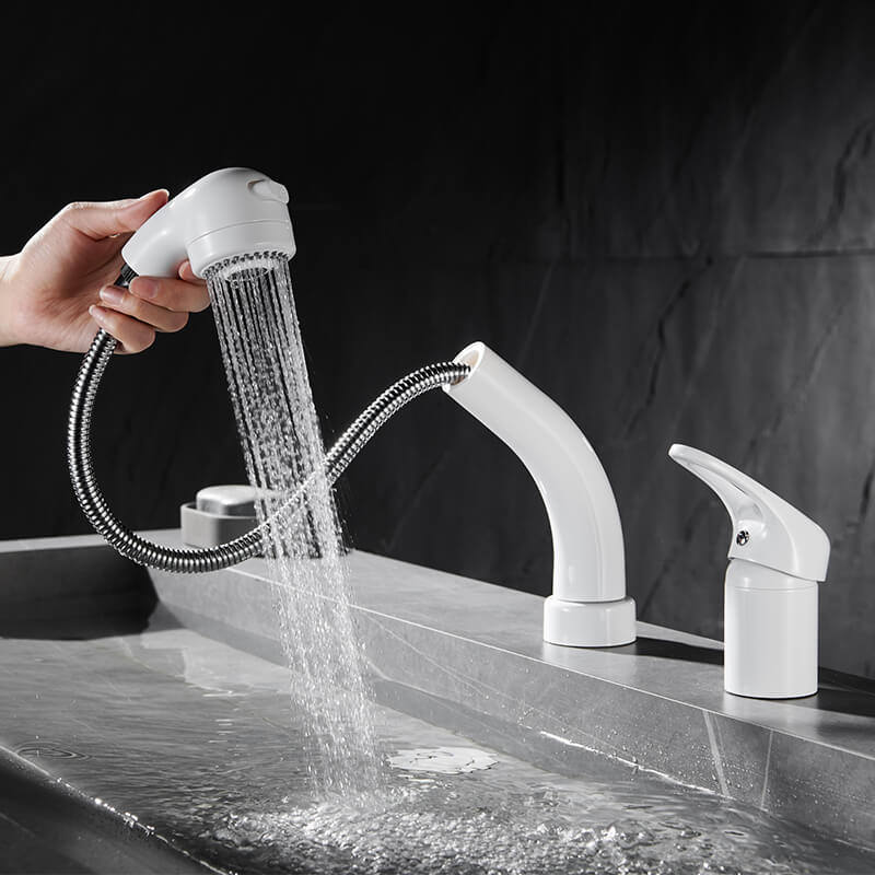 Hot Products Pull Out Swivel Wash White Basin Faucet Multi-function Pull Down Mixer Taps Bathroom Washing Faucet