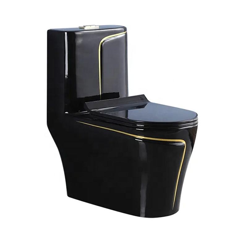 One Piece Siphoinc Flushing Black Gold Bathroom Toilet