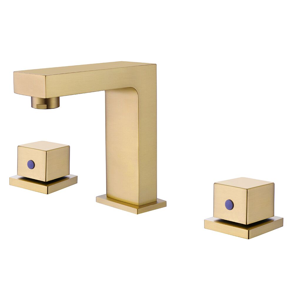3 Hole High Quality Brushed Gold Bathroom Basin Tap Ceramic CUPC Cartridge Brass Deck Mounted Basin Faucet