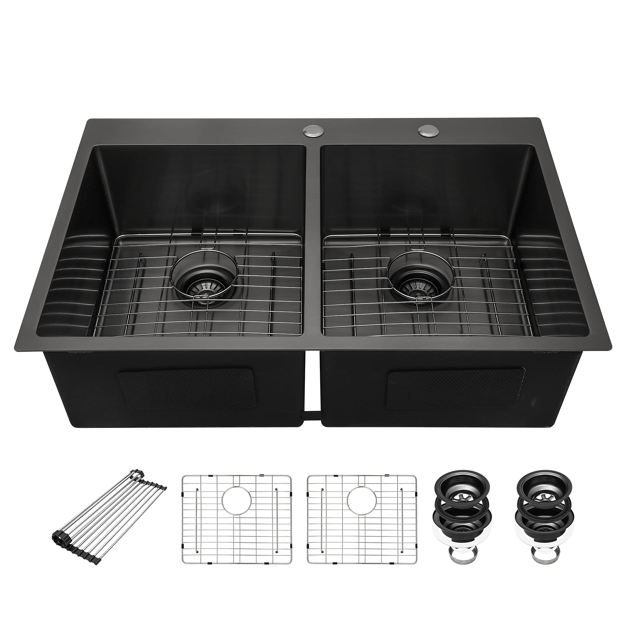 Factory Wholesale Black Double Bowl Kitchen Sink Stainless Steel Topmount Sink Kitchen Sinks