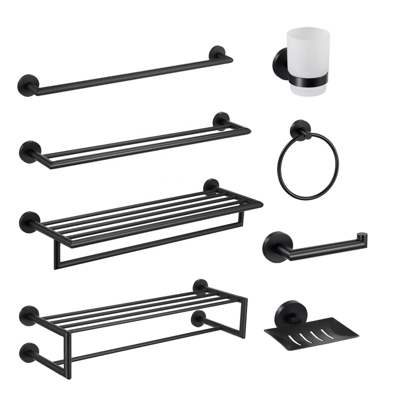 High Quality Manufacturer SUS 304 Stainless Steel Home Bathroom Accessories Hardware Set Black Towel Holders Paper Holder Towel