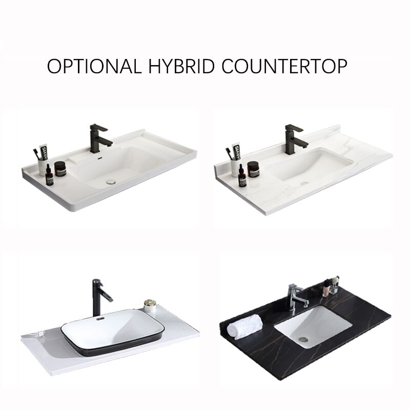 Gabinete de banheiro adequado para banheiros de tamanho único e espaço limitado. Personalizado com duas matérias-primas, seis opções de tamanhos, acabamento de superfície com pintura à prova d'água, três seleções de materiais para pias, totalizando mais de 18 designs diferentes.