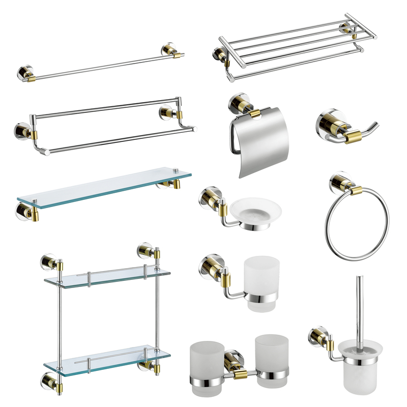 Modern Hotel Silver and Gold Stainless Steel 304 Luxury Toilet Bathroom Accessory Paper Holder Towel Rack Sets