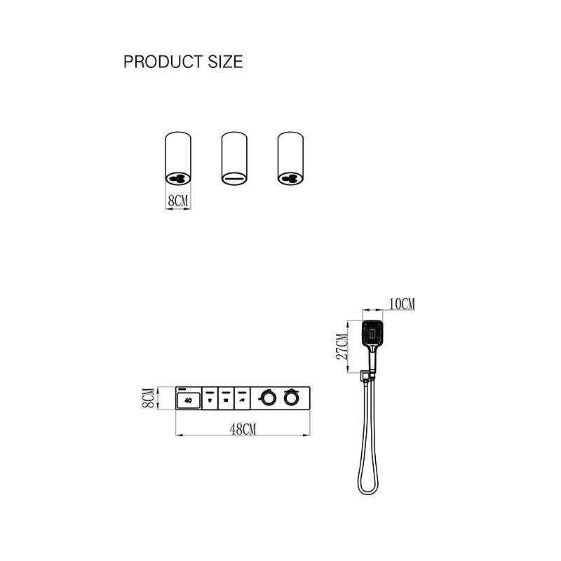Feature | Copper/304 stainless steel durability design Fully control the temperature Pressure hand shower and 304 stainless steel hose Concealed mixing valve brass combination Non-corrosion and anti-friction adjustable hand shower bracket Non-slip handle shower valve with built-in diverter for hot and cold water supply Adjustable water pressure device with a flow rate of 2 gallons per minute |