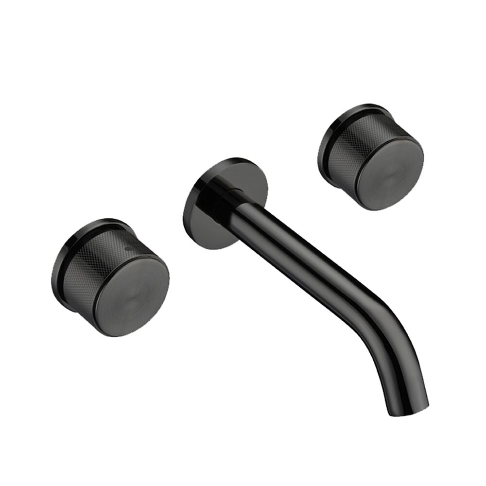 Round Dual Handles Wall Mounted Hot and Cold Solid Brass Bathroom Basin Mixer Faucets