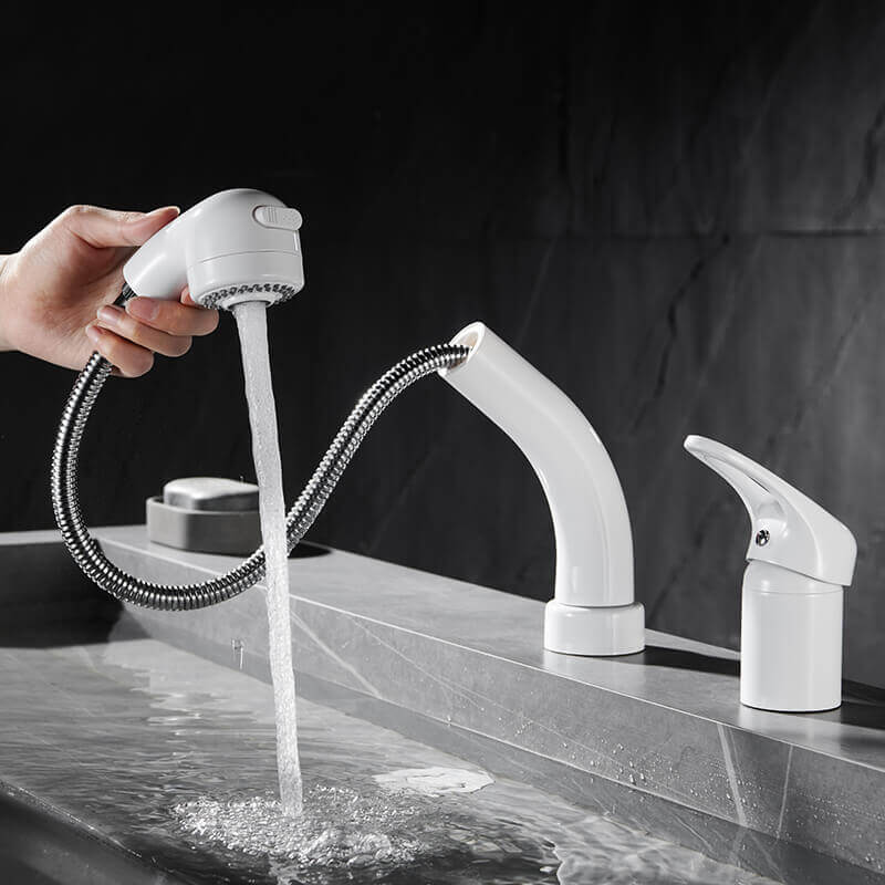 Single Hole Single Handle Utility Sink Faucet Vanity Lavatory Pull Down Mixer Tap with 360 Rotating Spout