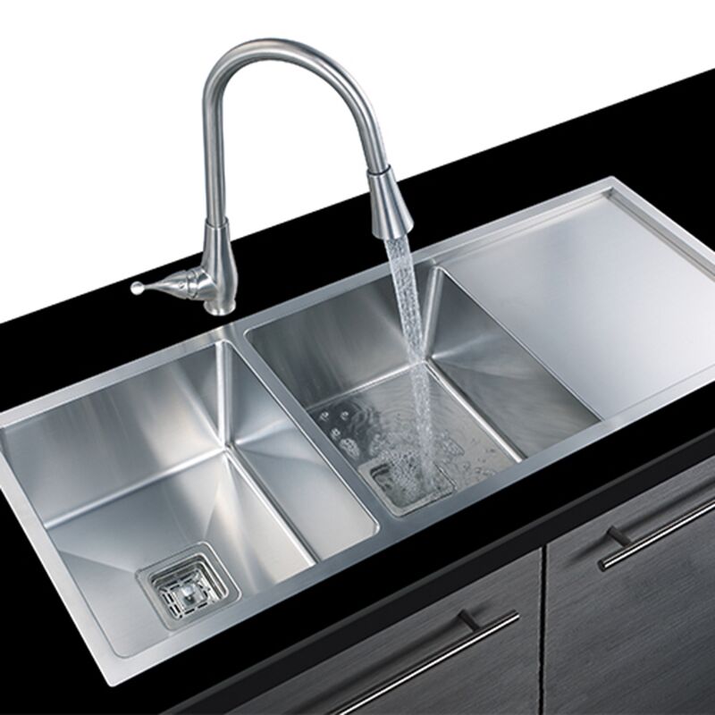 1.5-3.0mm thickness, constructed by heavy duty SUS304 stainless steel.200-200cm deep large sink can hold a lot of pots and pans.