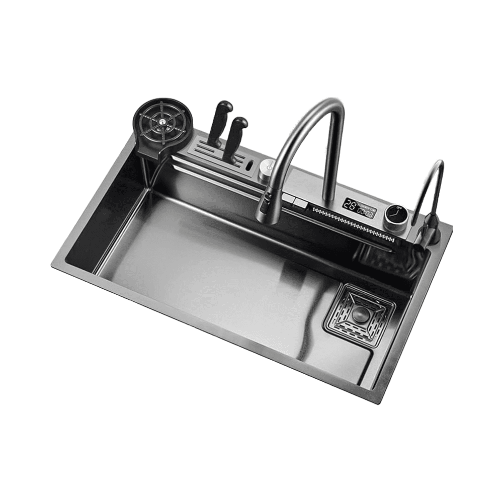 Smart Nano Anti-Scratch 304 Stainless Steel Kitchen Sink Set Double Bowl Square Counter Waterfall Multifunction Knife Holder