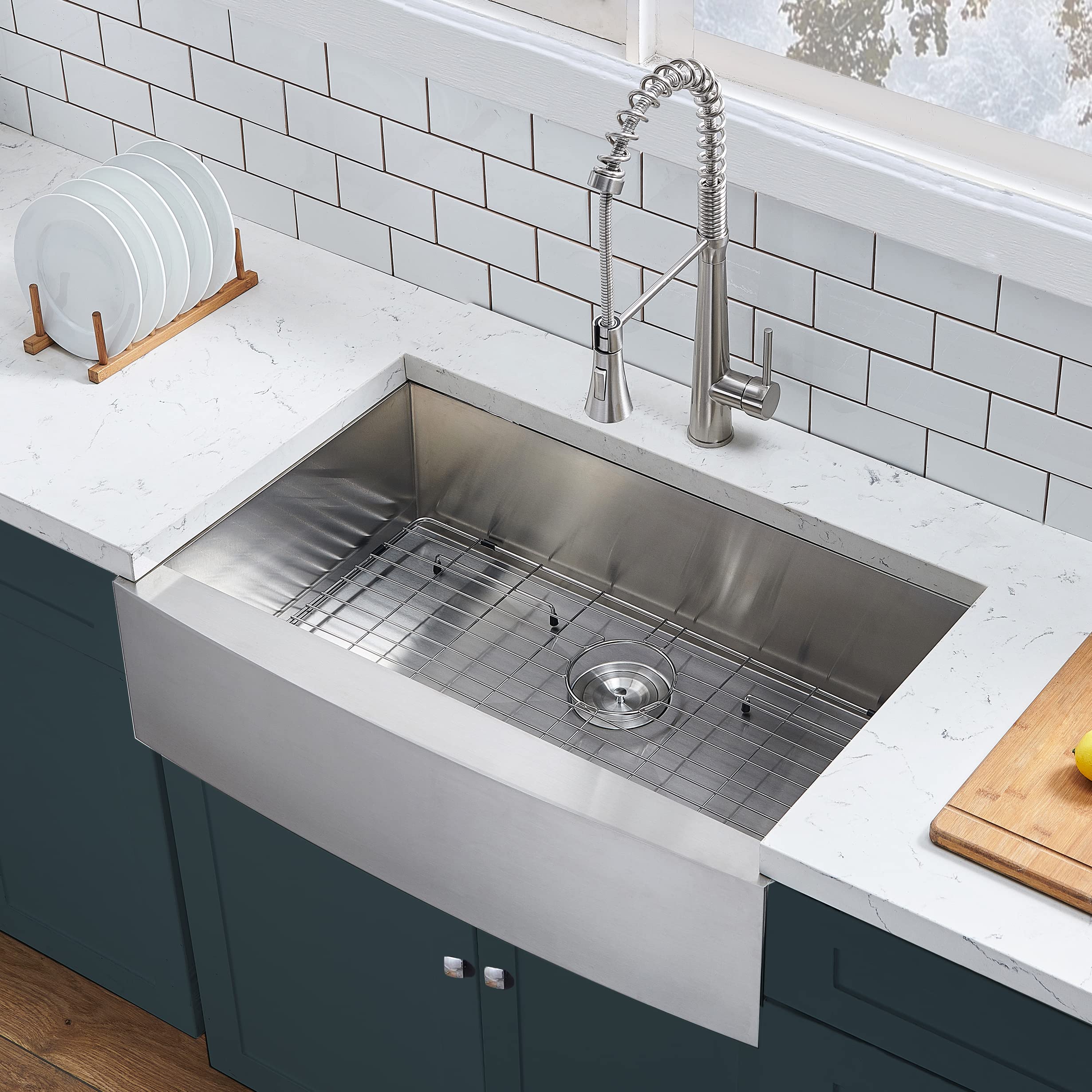 Steel Kitchen Sink Undermount Farmhouse Sink Flat Apron Front Sink