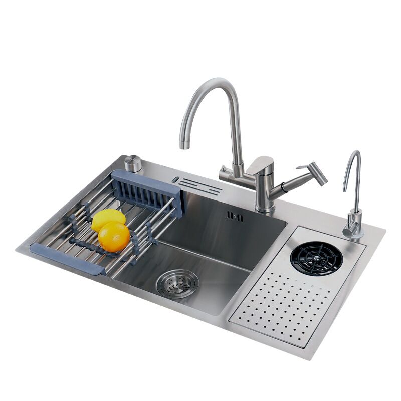 1.5-3.0mm thickness, constructed by heavy duty SUS304 stainless steel.200-200cm deep large sink can hold a lot of pots and pans.