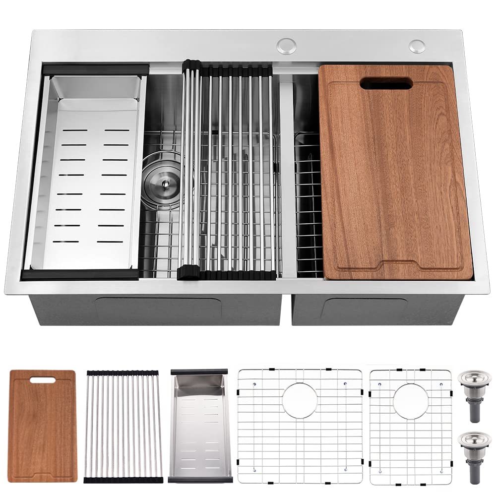 Top Mount Kitchen Sink 16 Gauge Stainless Steel 60/40 Double Bowl Sink With WorkFlow Ledge