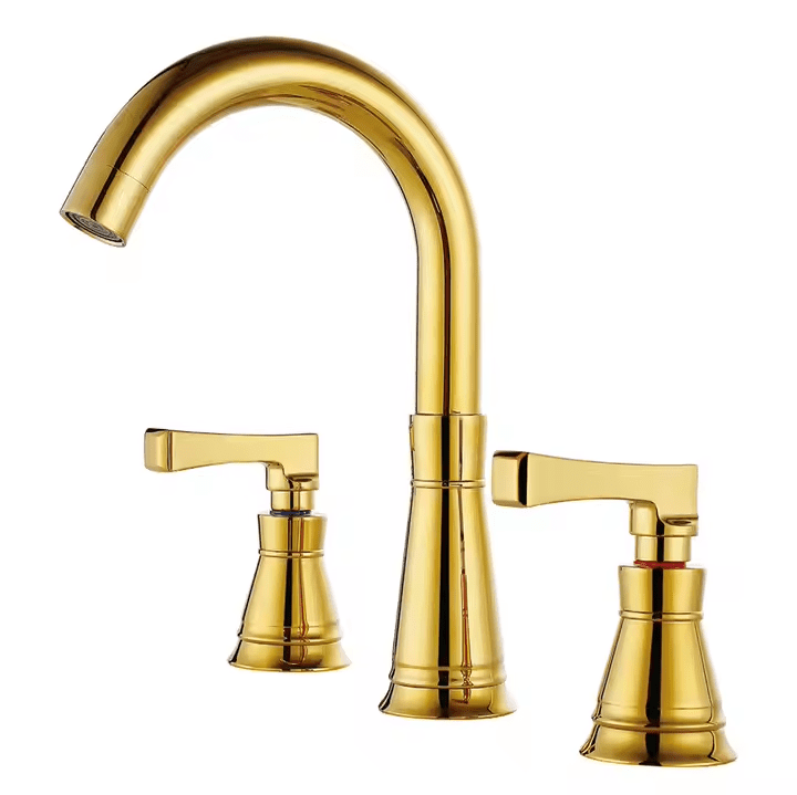 Traditional Style Deck Mounted 3 Hole Dual Handle 8” Widespread Gold Finish Brass Bathroom Sink Tap