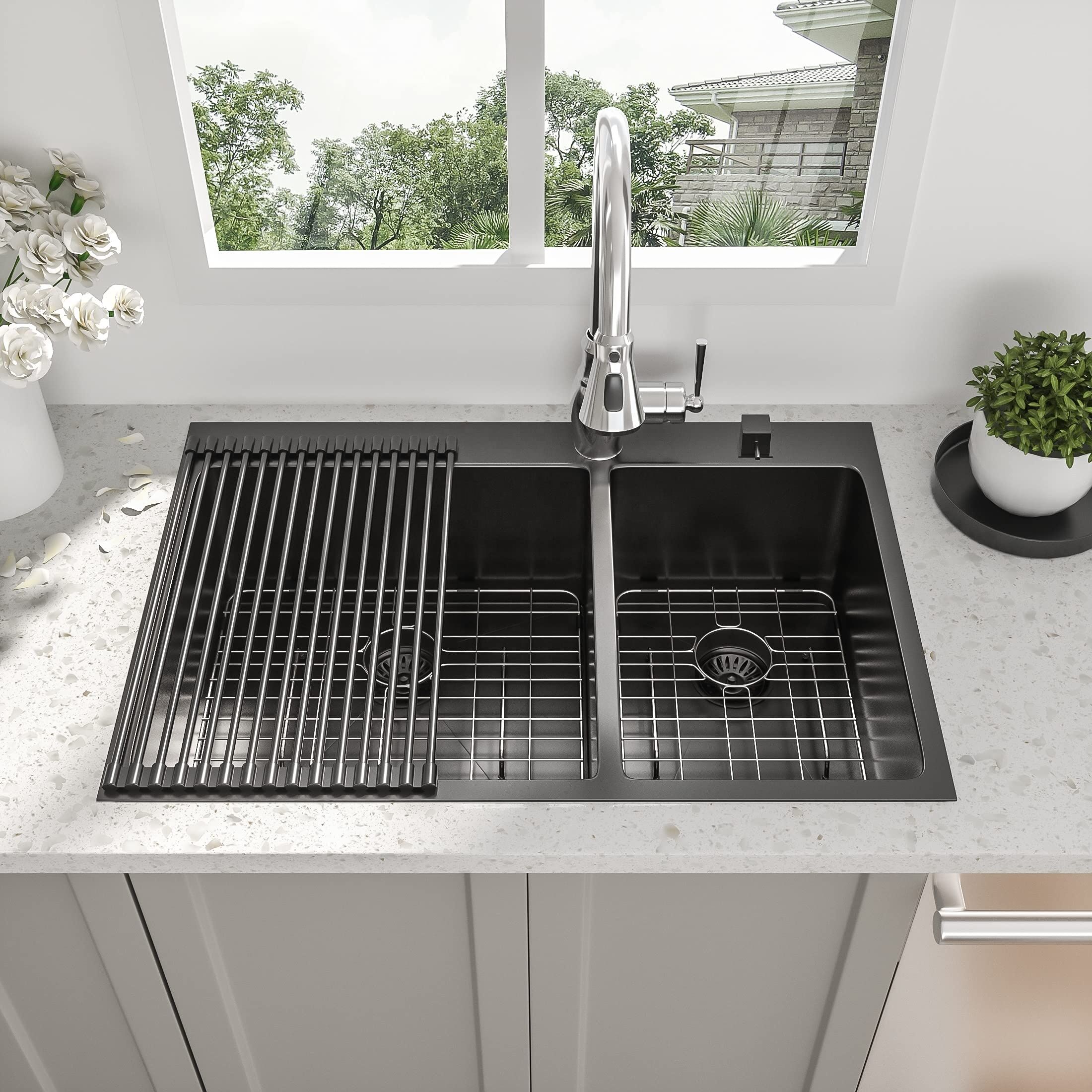 UPC Factory 33 Inch Double Bowl Sinks Stainless Steel Handmade Kitchen Sink Black