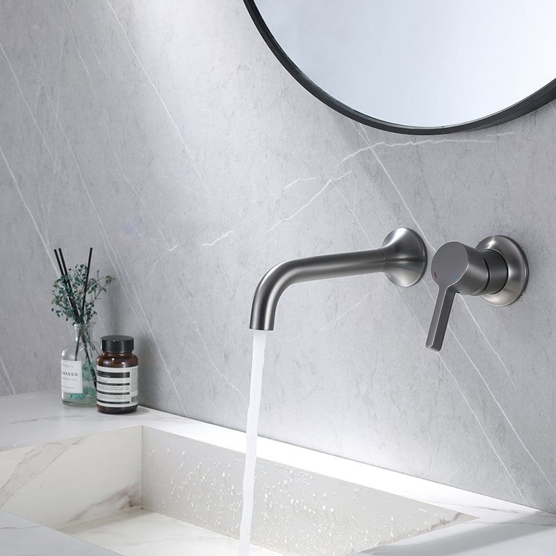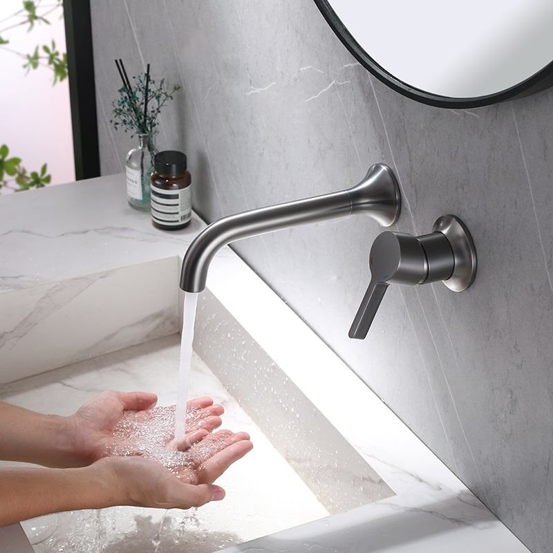 Wholesale Brass Single Handle Wall Mounted Bathroom Faucets Water Taps Gun Gray Wall Mounted Concealed Basin Mixer Faucet