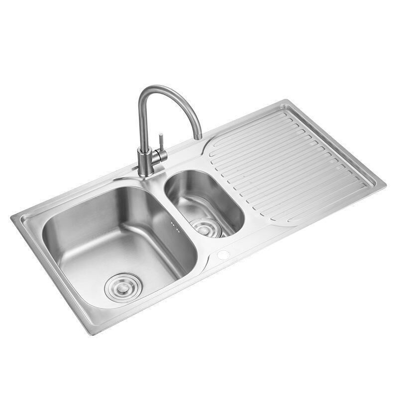 Wholesale Stainless Steel Handmade Brushed Kitchen Sink Double Bowl Above Counter Kitchen Sink