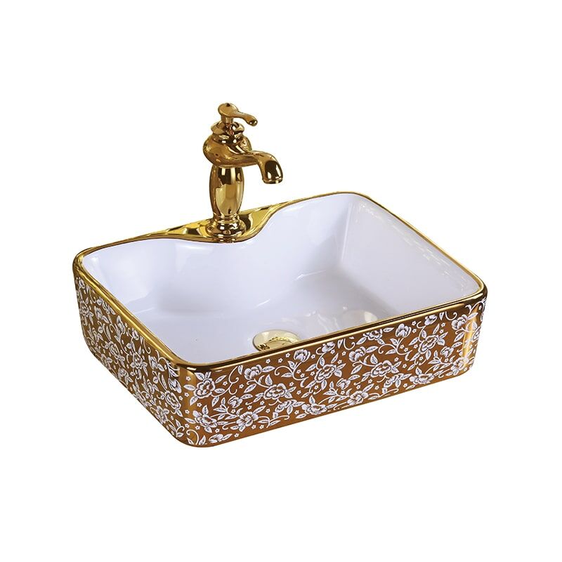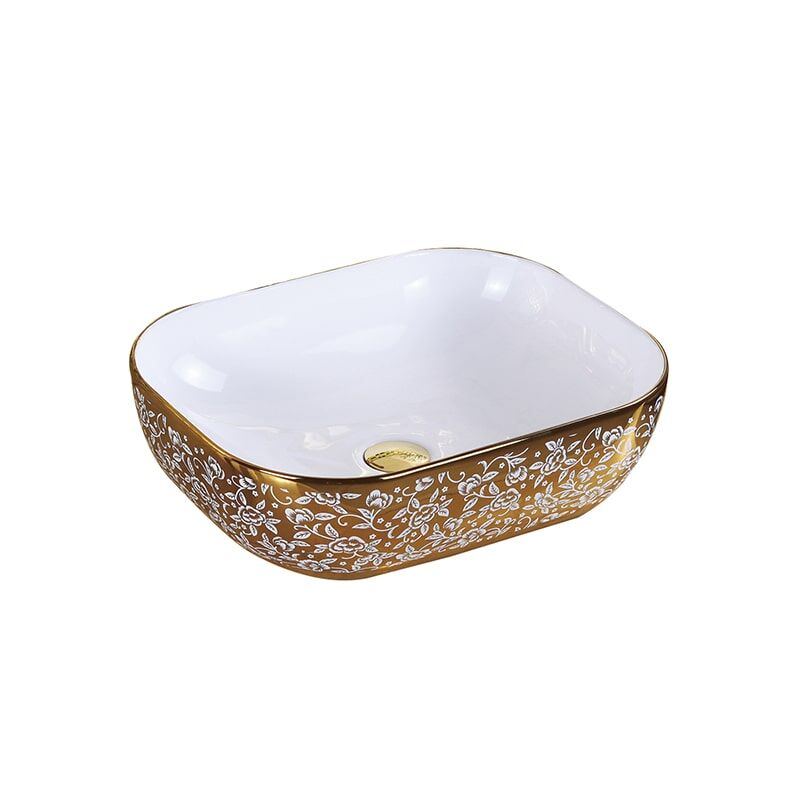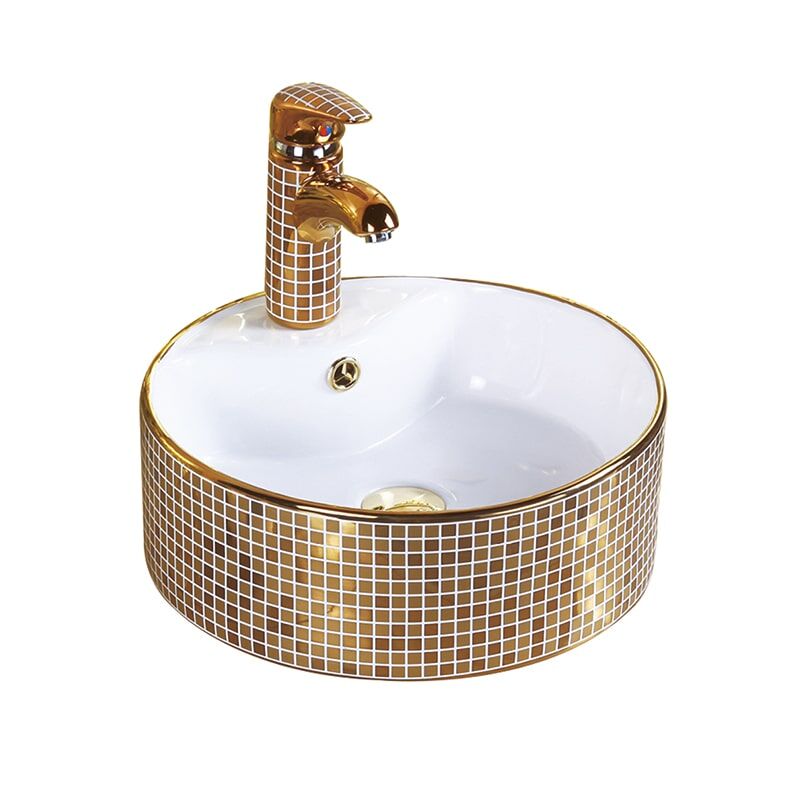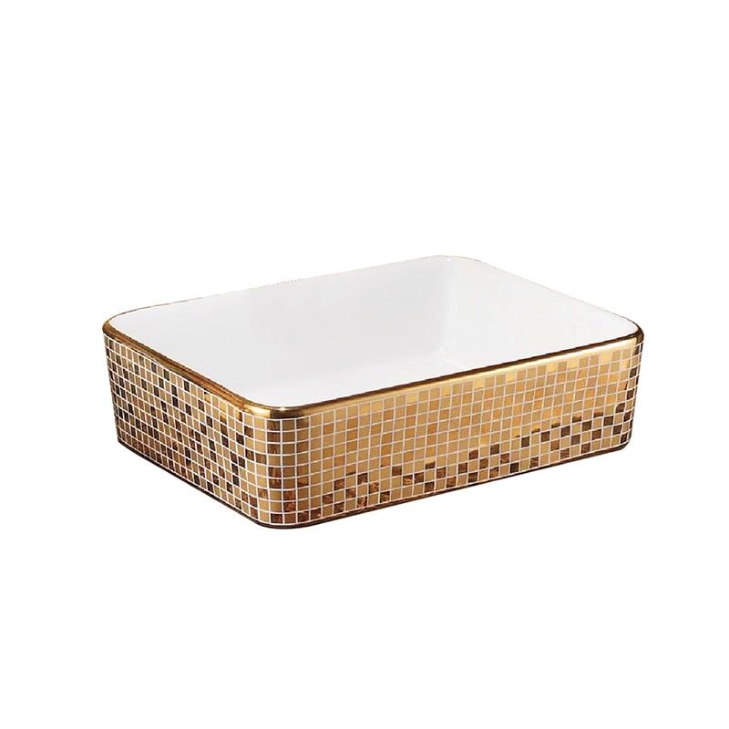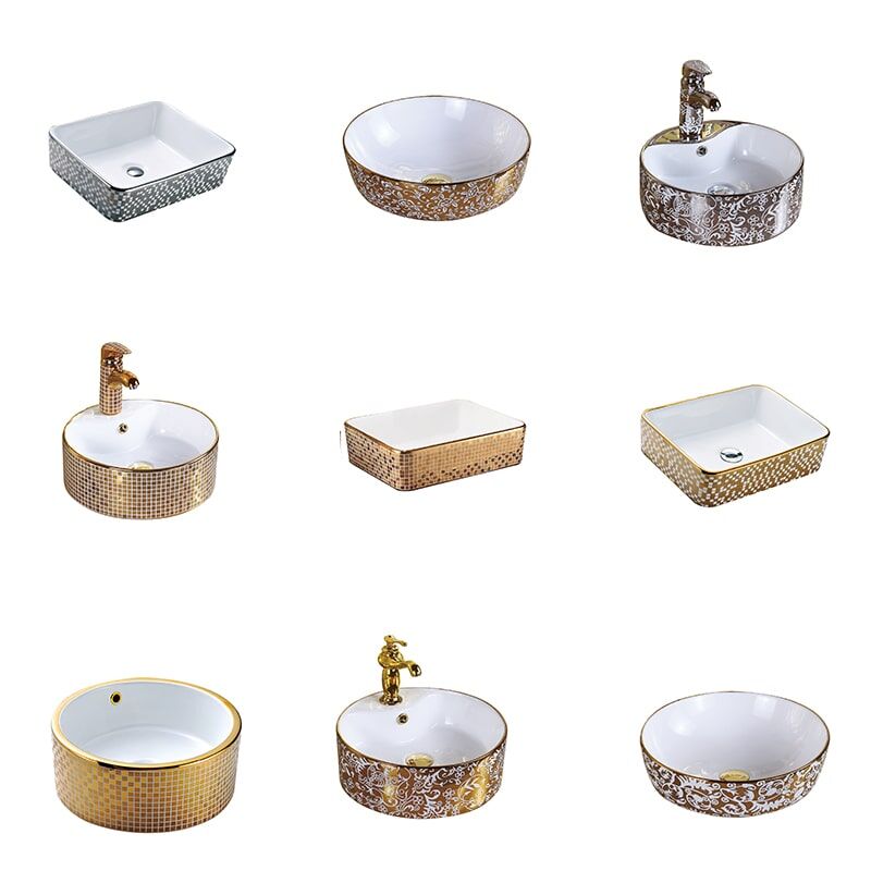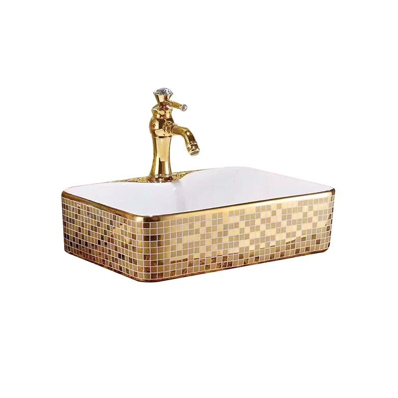 Wholesale Hotel Luxury Bathroom Wash Basin Ceramic Gold Plating Wash Basin MP Gold 0404